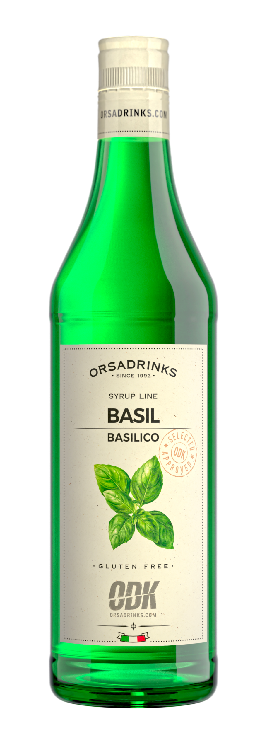 Fresh basil syrup in a 750ml glass bottle. Herbaceous flavor perfect for creative cocktails, lemonades, and Italian-inspired drinks.