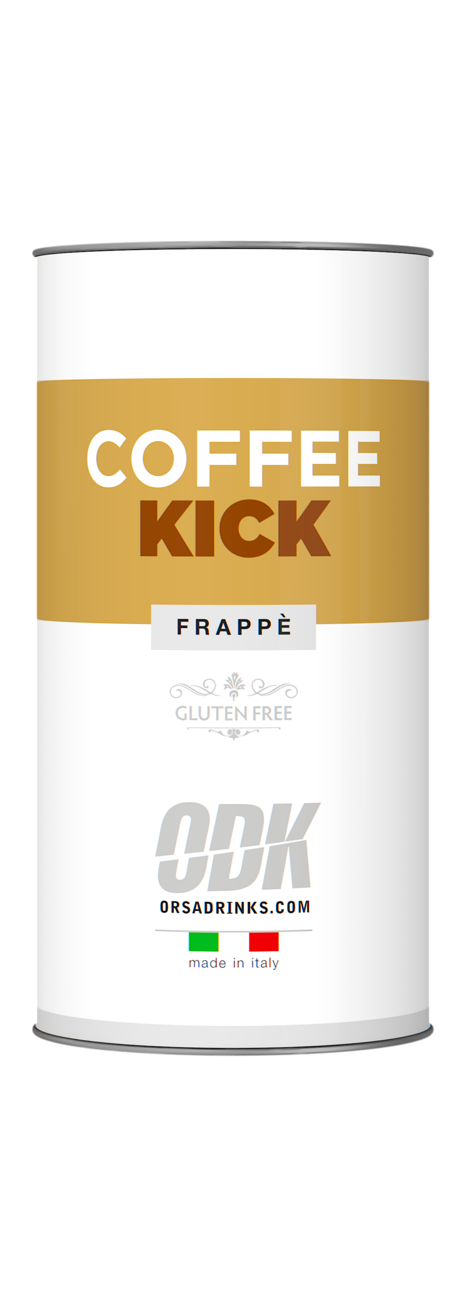 Coffee kick frappe powder in a 1kg bag. Bold coffee flavor for frozen coffee beverages. Perfect for coffee frappe enthusiasts. Part of Orsa Drinks Frappe Line.