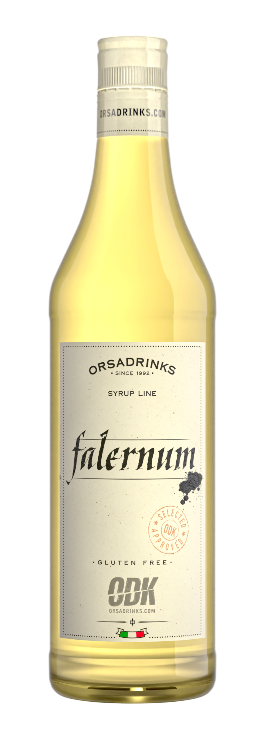 Caribbean-style falernum syrup in a 750ml glass bottle. Complex blend of almond, ginger, lime, and spices. Essential for tiki cocktails.