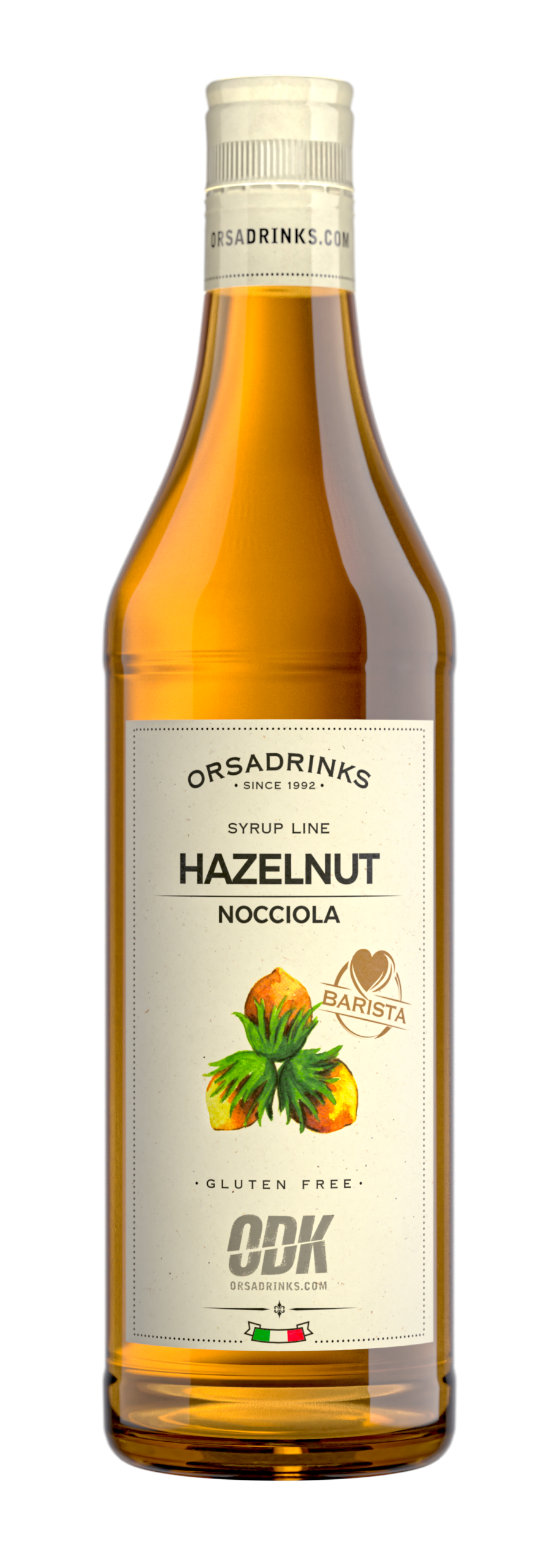 Roasted hazelnut syrup in a 750ml glass bottle. Nutty, rich flavor that’s a coffee shop favorite. Premium Orsa Drinks quality.