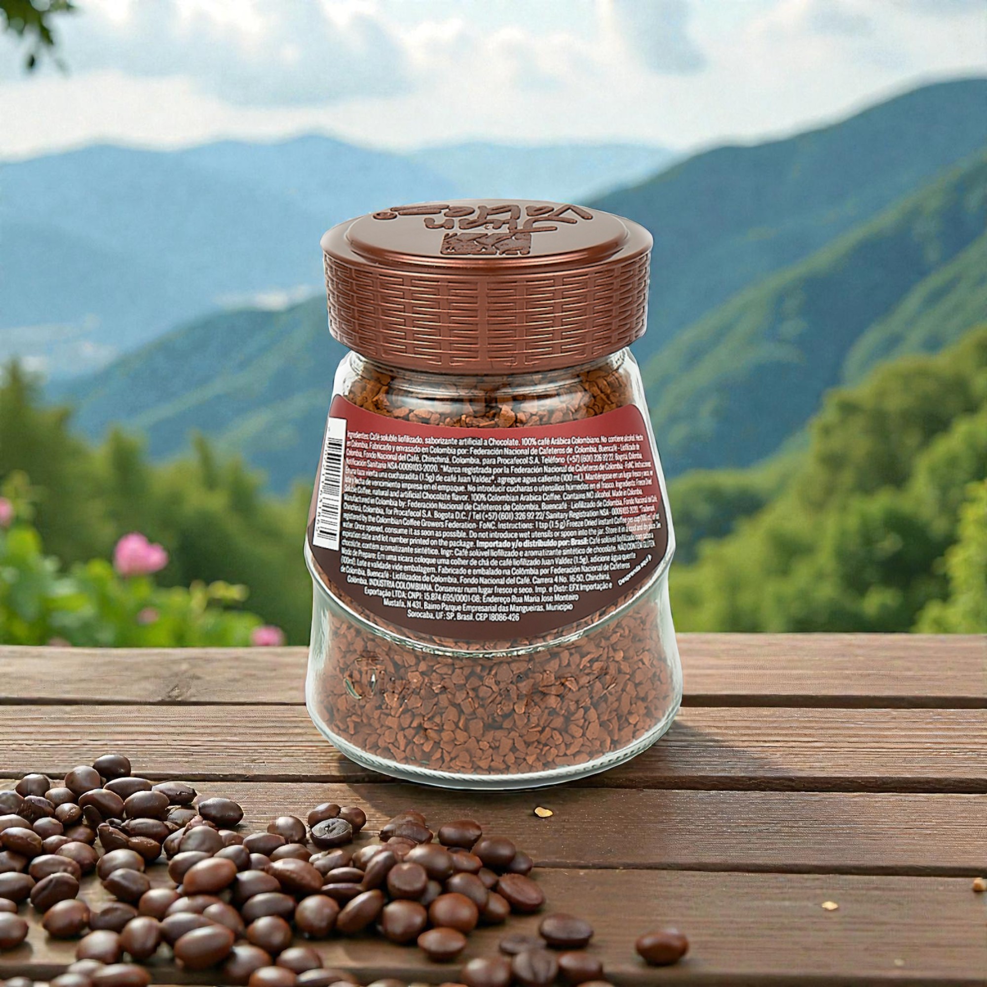 Freeze-dried instant coffee with rich chocolate flavor. Made from 100% Colombian Arabica beans with natural chocolate notes for a delightful, indulgent coffee experience.