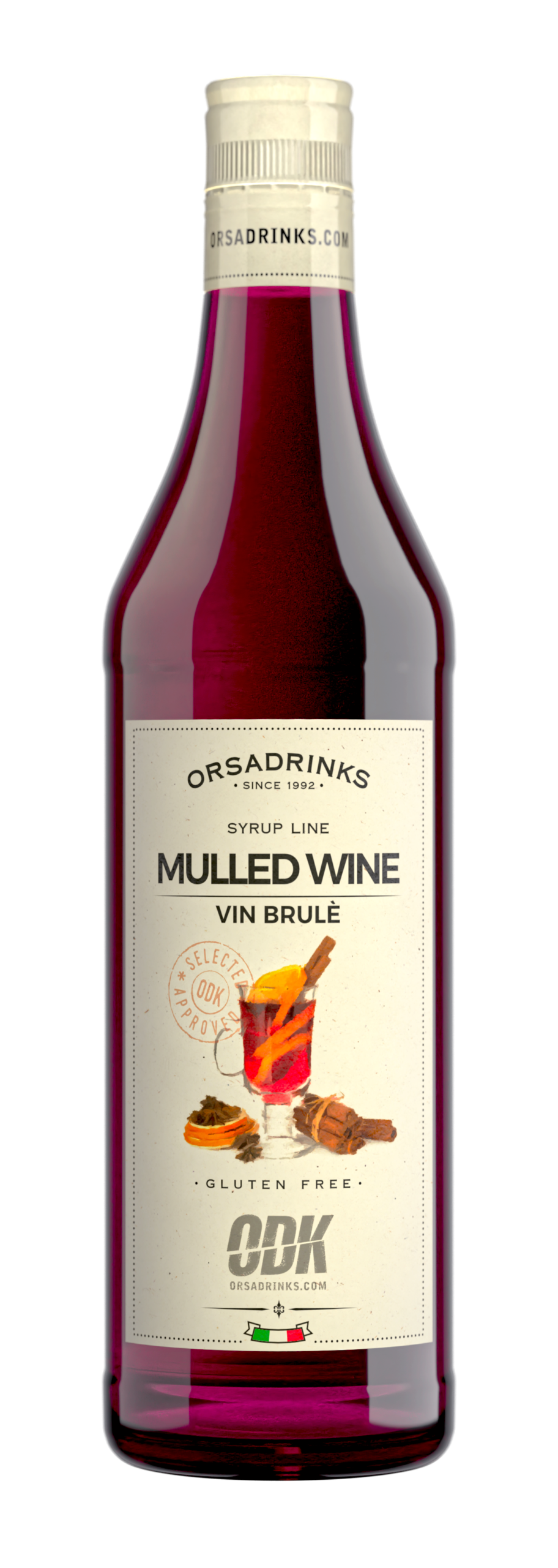 Spiced mulled wine syrup in a 750ml glass bottle.