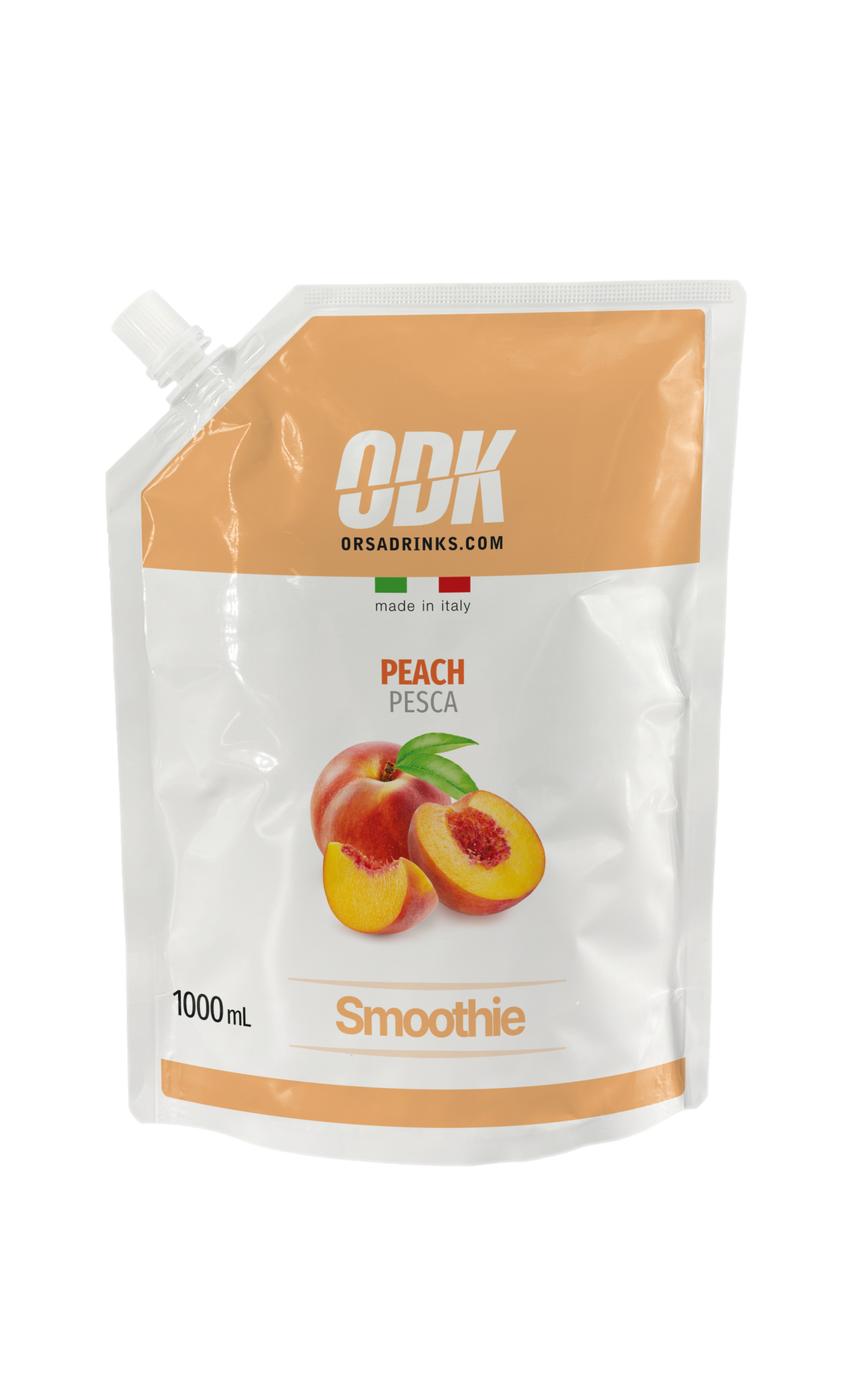 Ready-to-blend peach smoothie puree in a 1kg bottle. Convenient smoothie base with authentic peach flavor. Part of Orsa Drinks Smoothie Line.