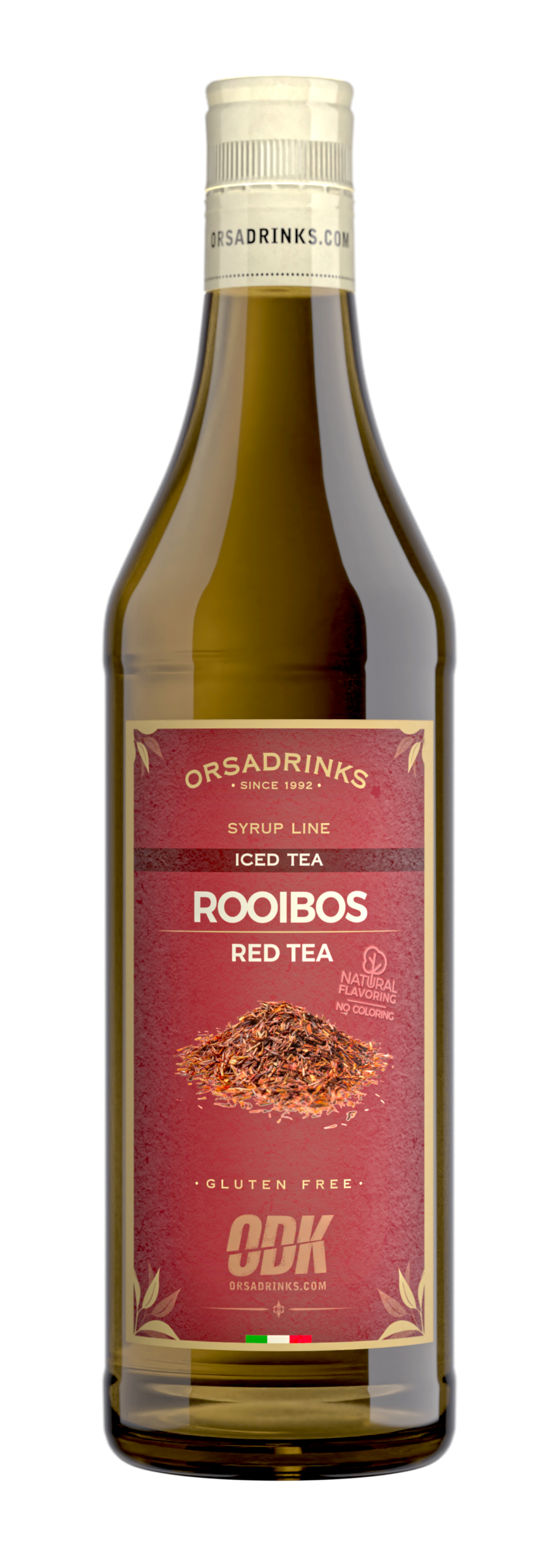 Rooibos iced tea concentrate in a 1L bottle. Caffeine-free South African red tea. Part of Orsa Drinks Iced Tea Line.