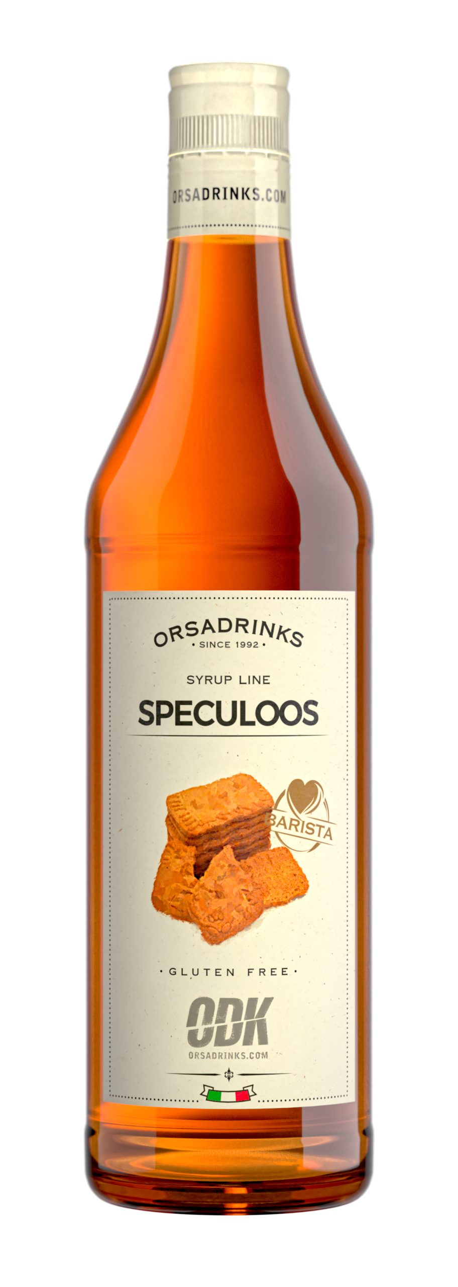 Belgian speculoos cookie syrup in a 750ml glass bottle. Spiced cookie flavor perfect for lattes and dessert beverages.