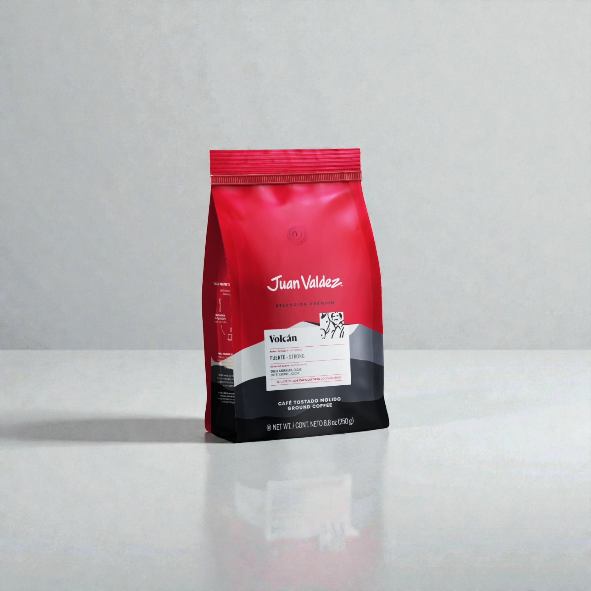 100% Colombian Arabica coffee from the North region. Strong coffee with medium-low acidity and high body. Cup Profile: Strong (100%). Acidity: Medium-Low (35%). Flavor notes: Sweet caramel and cocoa. Ingredients: 100% Colombian Arabica coffee, premium quality, naturally roasted.