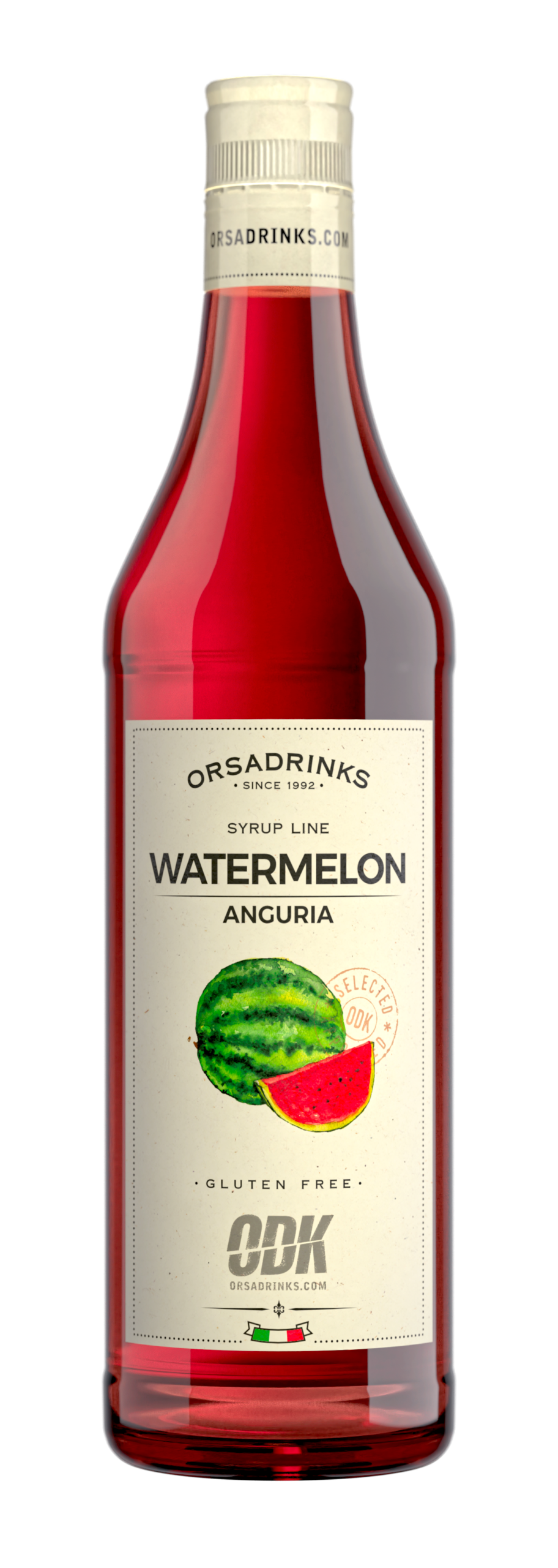Refreshing watermelon syrup in a 750ml glass bottle.